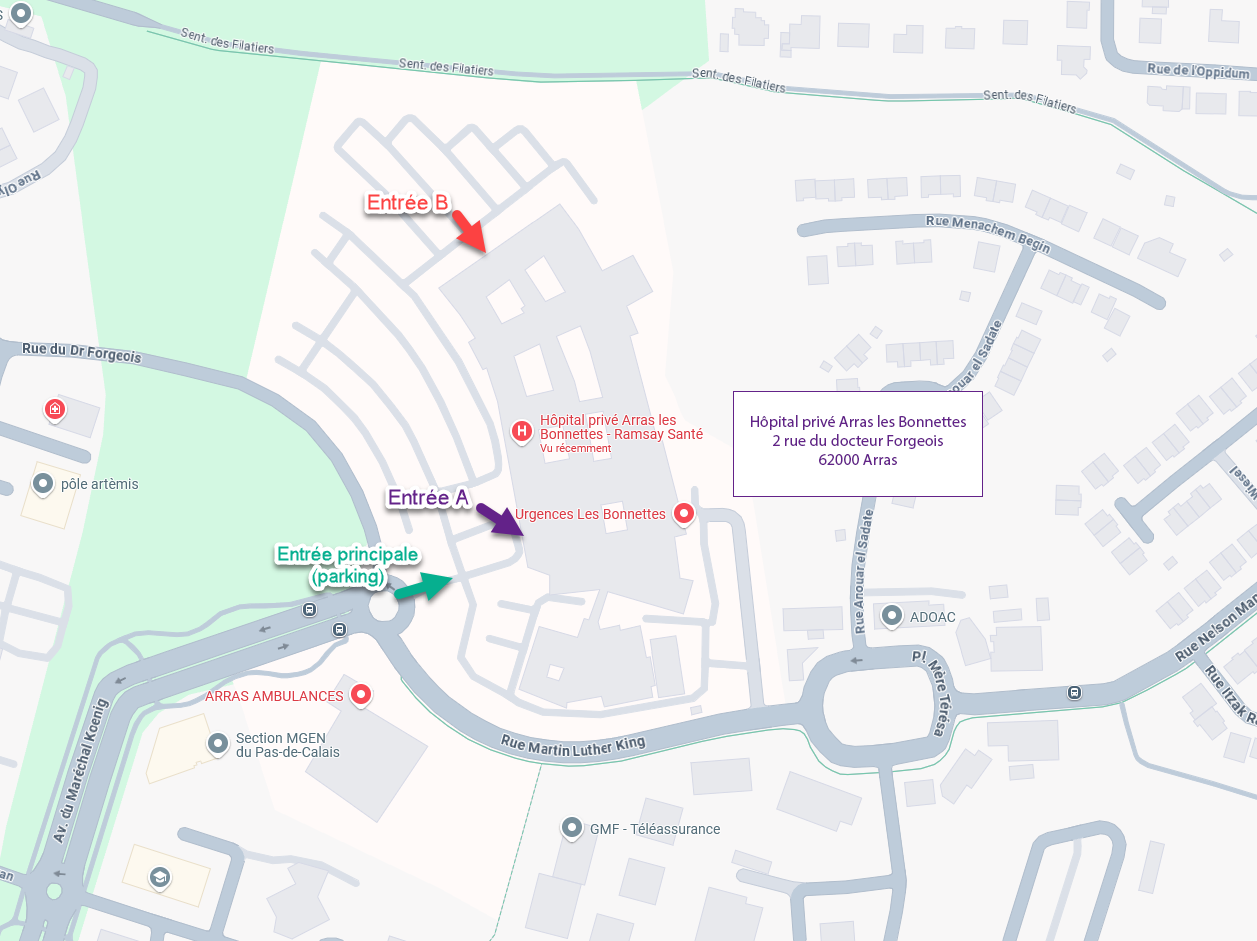 Un service dédié situé à l’entrée immédiate (entrée B) de la clinique avec :